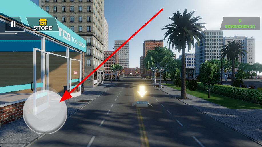 1、通过推动摇杆来控制角色在街道、商店内的行进方向,比如想前往有货物的街道区域,就推动摇杆让角色朝目标方向移动。