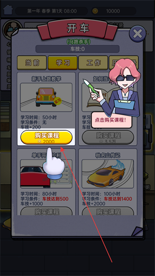 1、在“开车”职业板块,购买新手道路教学课程,开启学习之路,提升车技。