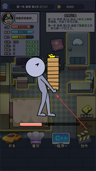 打工买房模拟器内置修改器是一款以现代都市为题材的作品,参与者将扮演刚毕业的大学生,为实现买房理想而努力奋斗,包含多种职业可供选择,像酒店大厨、出租车司机、摆摊小贩、程序员等,还能通过学习技能获取更好工作与更高收入,设有精力、健康、心情三个属性,这些属性会通过不同方式减少,需及时回复。