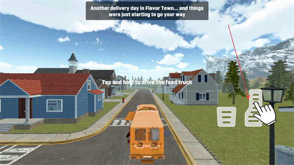 2、驾驶餐车时,点击右侧加速按键可控制行驶速度,方便在小镇中穿梭配送餐食。