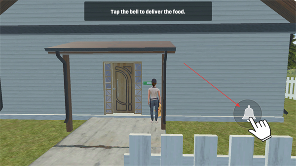3、到达顾客房屋前,点击门铃按键按响门铃,完成餐食交付的关键步骤。