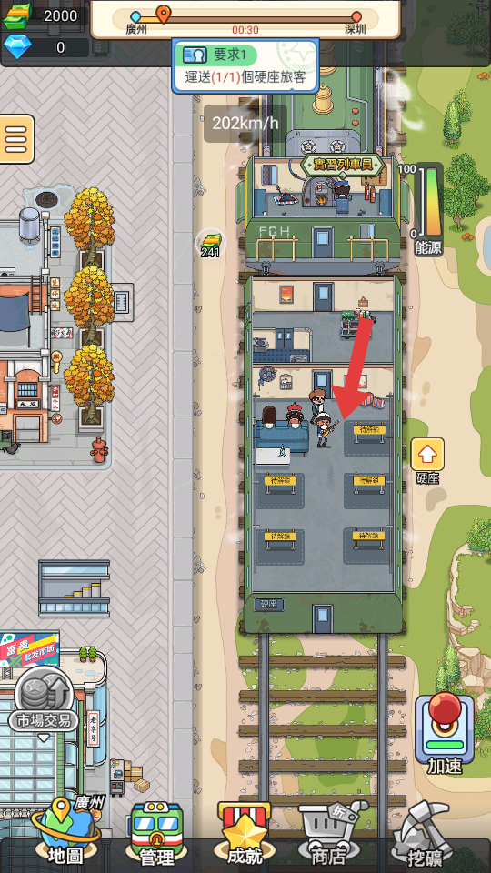 2、火车升级与业务拓展:用积累资金解锁更多座位、拼装特色车厢,升级火车性能以适配更远路线,同时开启特产交易,抓住物价波动时机低买高卖增收。