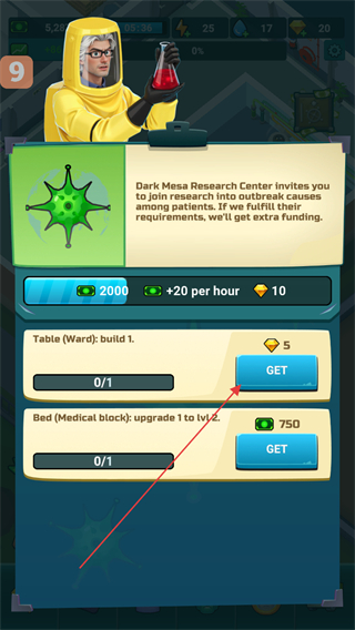 1、在任务界面找到TableWardbuild1.,点击GET按钮领取对应任务。