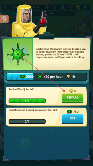 4、返回任务界面,点击REWARD按钮领取TableWardbuild1.的任务奖励。