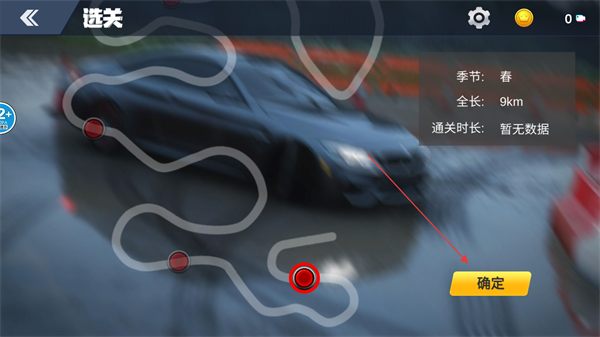 1、在选关界面,点击红色圆点选定关卡,可查看季节、全长等信息,确认后点击确定进入游戏。