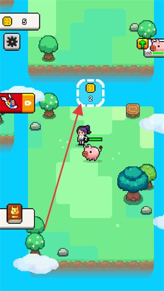 1、操控角色靠近粉色小猪,击败它获取道具,同时观察上方的金币目标。