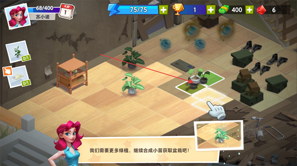 4、合并多个绿植,合成小盆栽获取收益,持续升级物品解锁更多内容。