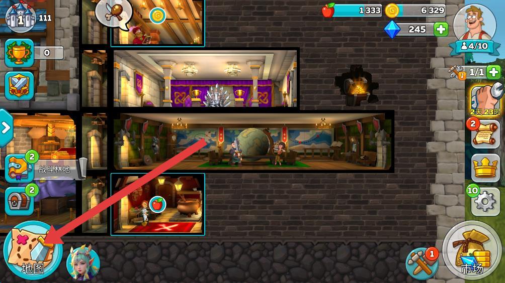 1、进入游戏主界面,点击主界面左下角地图图标。