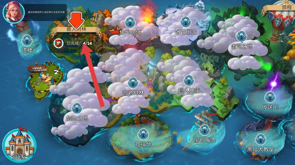 2、在地图中挑选可进攻的区域,点击需要的关卡。
