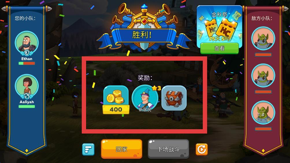 4、战斗胜利后在结算奖励中即可获得宝箱。