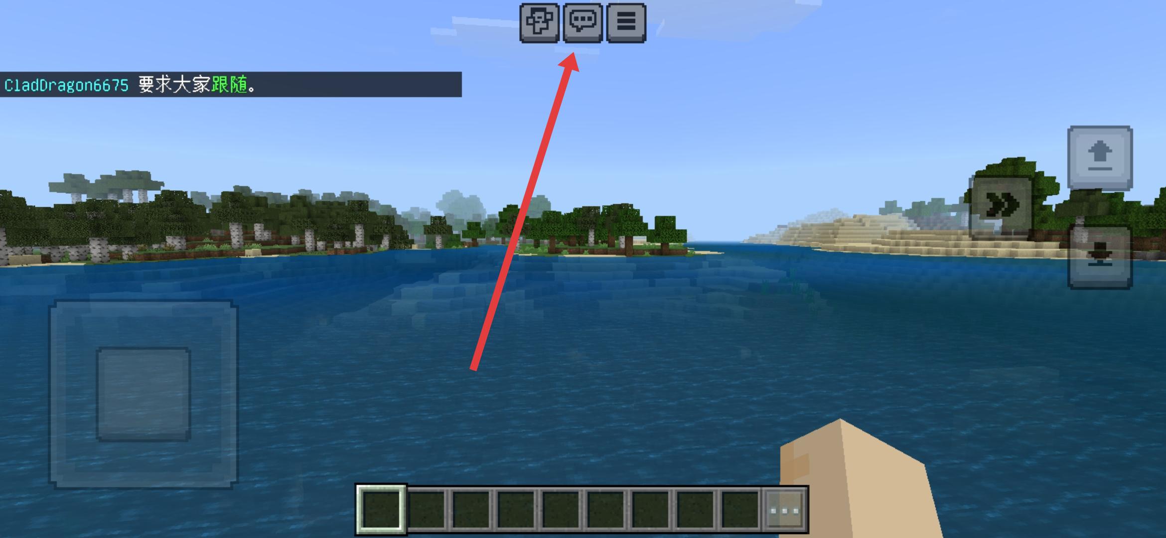 2、进入我们创造的场景游戏后,我们这边需要点击界面顶部中间的聊天对话框的图标,调出聊天界面。