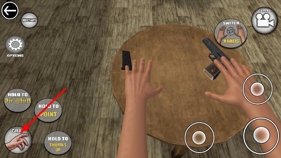 1、点击GRAB的按键,操控了手部进行动作,拾取桌上枪械部件,组装或使用枪械基础操作。