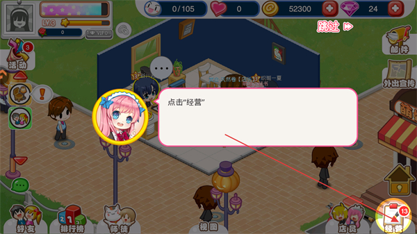 2、根据提示点击经营选项,进入商店相关操作页面。