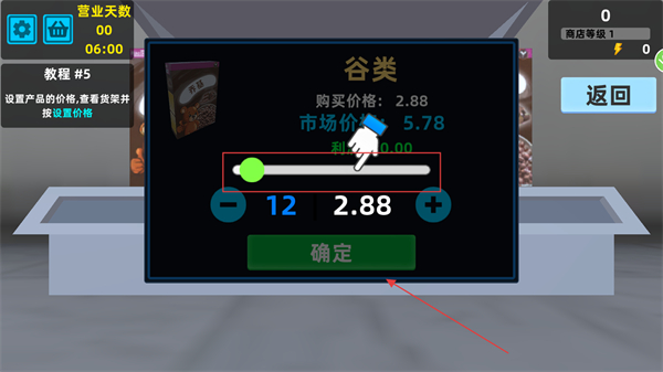 3、查看商品的购买价与市场价,通过滑动价格滑块调整合适的售价,确认价格后点击确定按钮,完成商品的售卖价格设置。