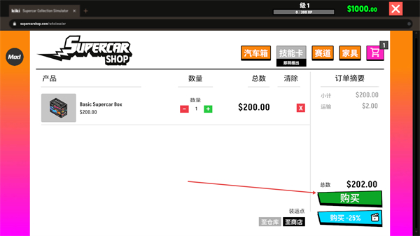 4、确认订单后点击购买,消耗资金获取该汽车箱道具。