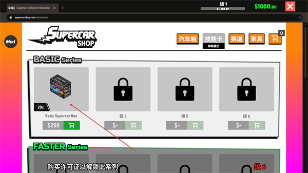 3、进入汽车箱分类,选择BasicSupercarbox准备购买。