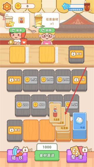 3、梯度化原料解锁机制,随着店铺等级提升与收益积累,可逐步解锁进口茶叶、新鲜水果、特色小料等高端食材,解锁更多隐藏饮品配方,丰富菜单吸引力。