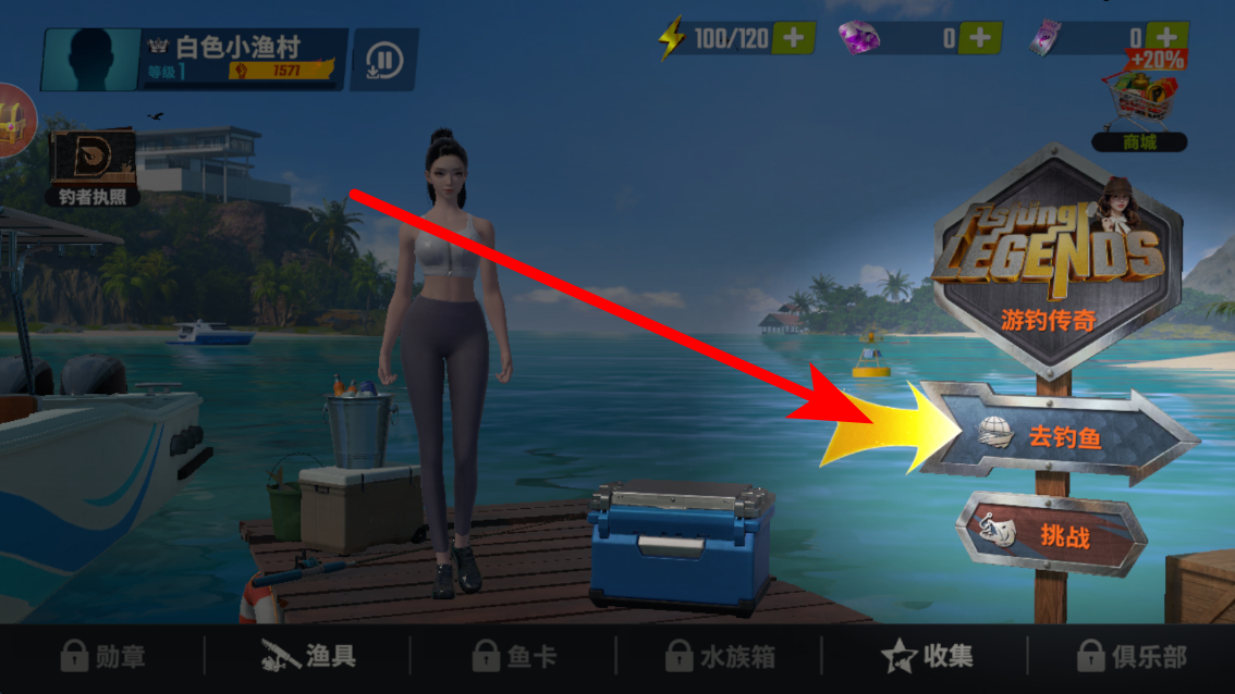2、然后点击前往钓鱼的场景,在界面中找到去钓鱼的选项,点击后进入的钓鱼河流湖泊场景,准备进行钓鱼操作。