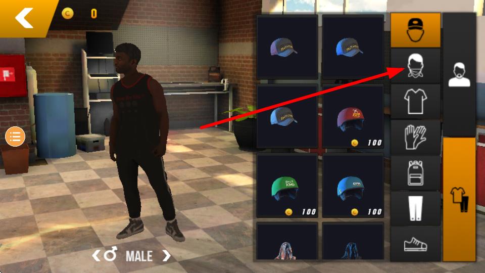 1、在角色装扮界面,点击箭头指向的面罩类服饰选项,可切换角色面部装扮,丰富角色外观,提升个性体验。