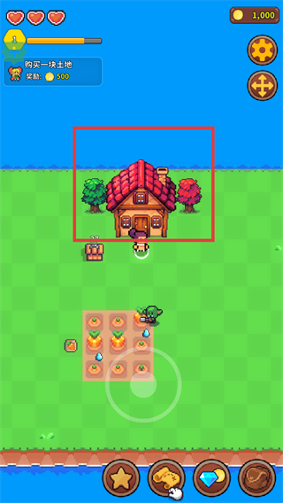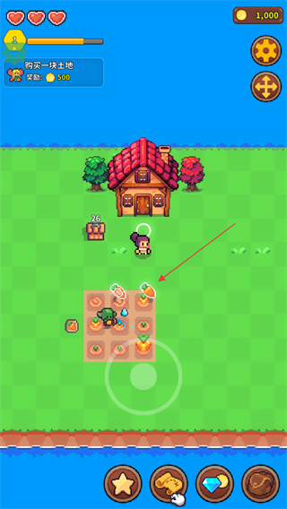 1、进入游戏场景后,注意田里农作物,成熟之后靠近即可收取。