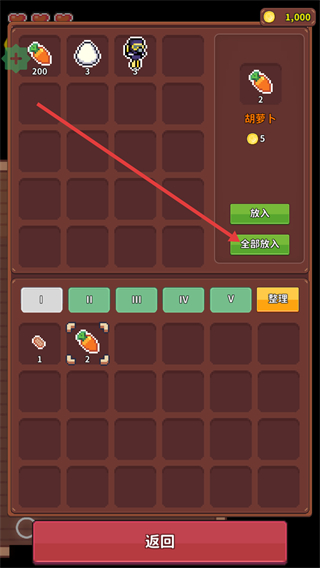 4、靠近之后打开箱子,点击需要放进去的农作物,点击放入即可。
