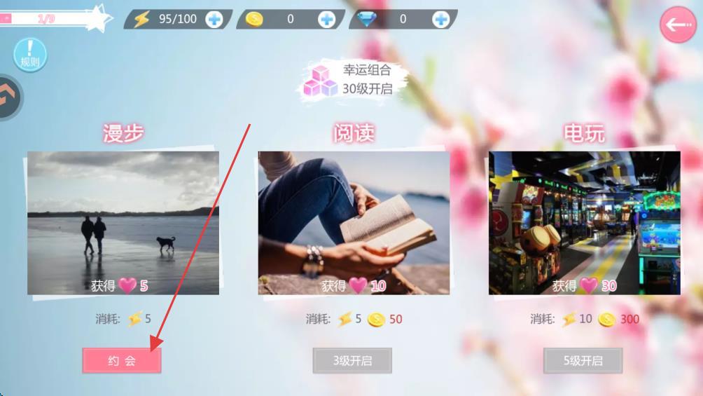 4、选择约会按钮并点击,即可增加亲密度。