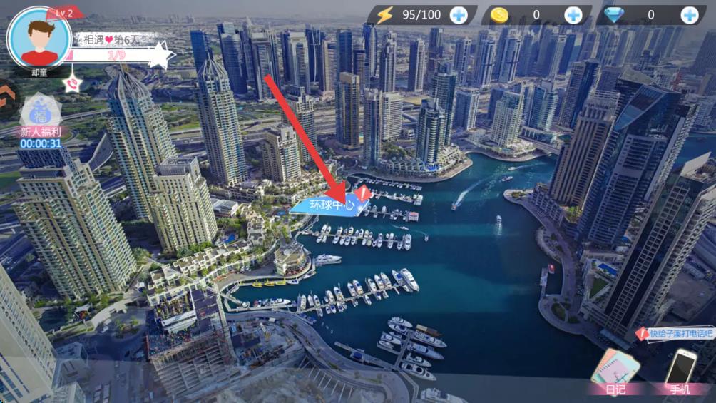 3、在游戏主页面找到并点击环球中心按钮。