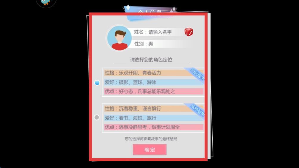 2、选择自己喜欢的个人信息,确认后点击确定。