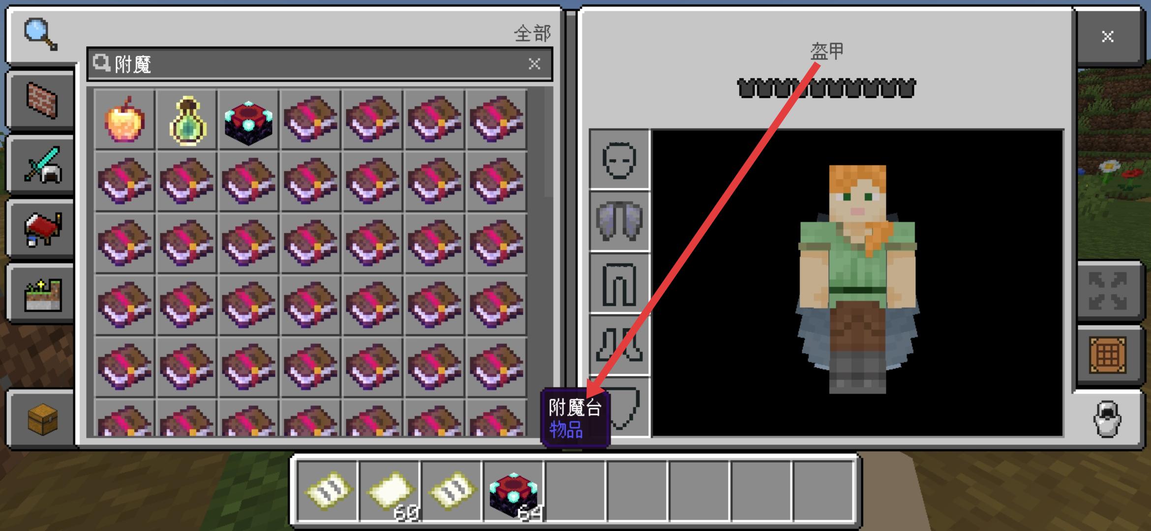 1、收集附魔书、青金石搭建附魔台,并在其周围间隔1格摆放15个书架,同时准备好待附魔的武器、工具或盔甲。