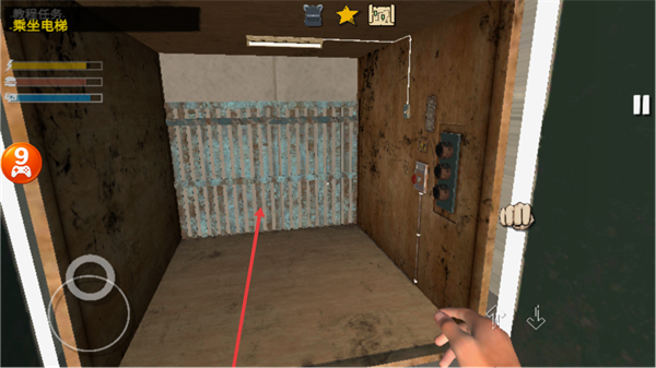 2、按Press to open/close the elevator door提示,操作开启电梯门,完成乘坐电梯任务。