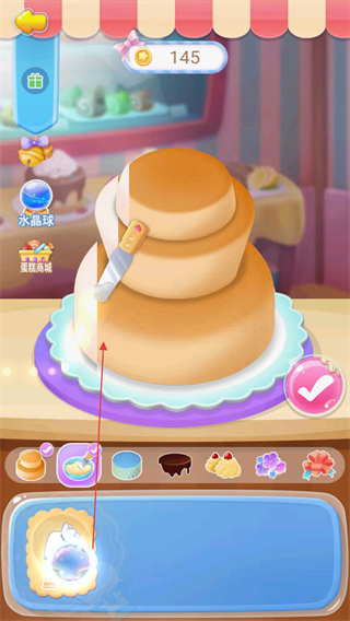 4、完成蛋糕装饰后,点击确认按钮,提交蛋糕作品,获取金币奖励。