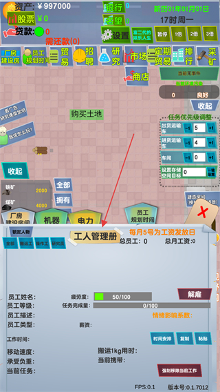 2、进入工人管理界面,雇佣员工,根据需求管理员工,开展生产经营。