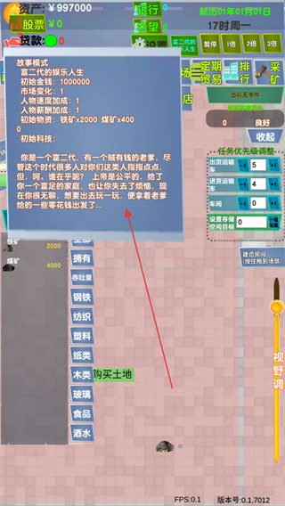 1、选择富二代的娱乐人生故事模式,利用初始资金购买土地,开展产业布局。