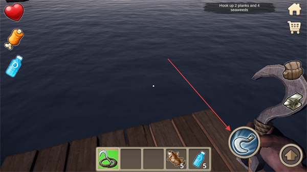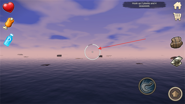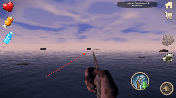 1、查看任务Hookup2planksand4seaweeds,瞄准目标区域准备钩取物资。