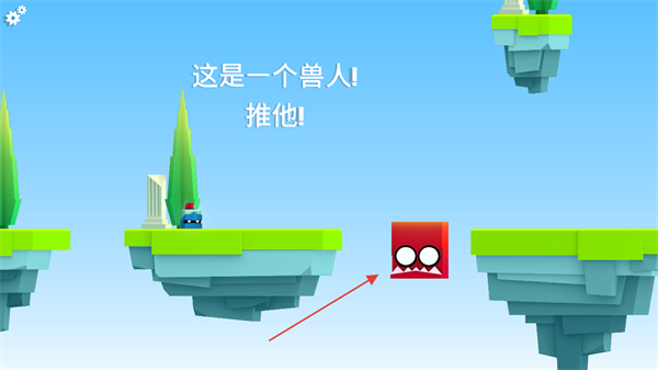 2、遇到兽人,轻按推动将其推下平台。