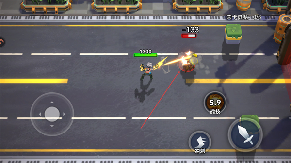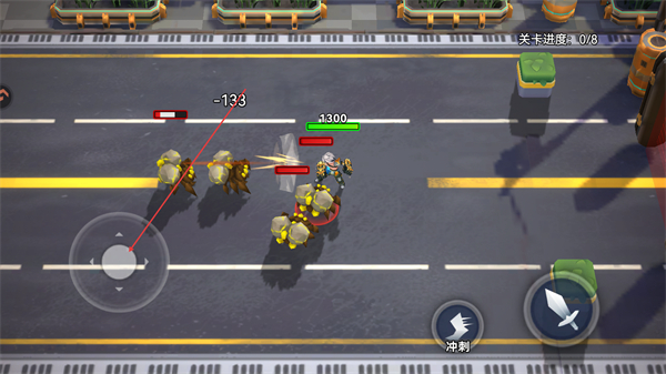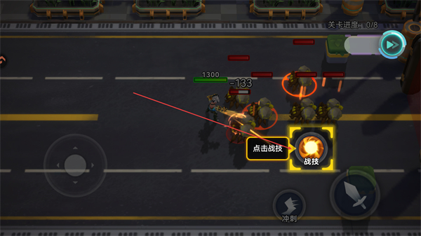 1、操控角色移动,攻击敌方单位,削减其血量,推进关卡进度。