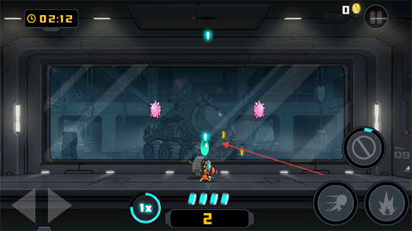 2、点击右侧技能按钮太空舱图标,释放技能清理周围敌人,获取资源。