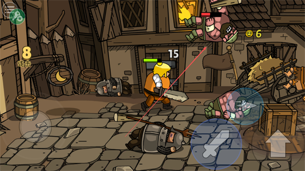 1、操控角色在城镇中与敌人战斗,利用武器和盾牌攻击、防御,击败敌人。