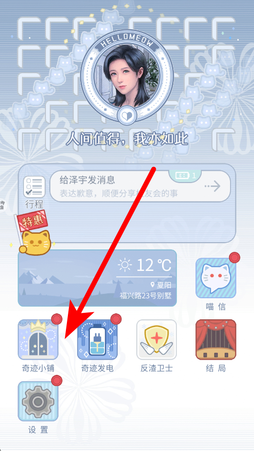 4、找到奇迹小铺这类店铺入口,进入后可挑选喜欢的装扮,使用获取的资源购买,用来装饰场景,让游戏画面更符合自己的喜好。