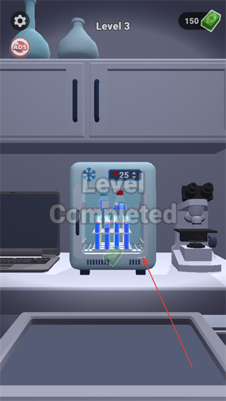 4、完成试管整理后,通关Level3,显示LevelCompleted。