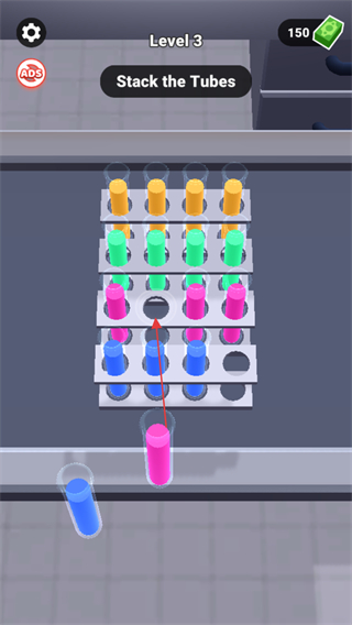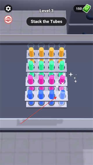 1、在Level3中,根据StacktheTubes提示,整理试管。