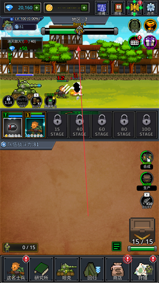 1、在战斗场景中,士兵会自动与敌人交战,通过击败敌人推进关卡,提升区域等级。