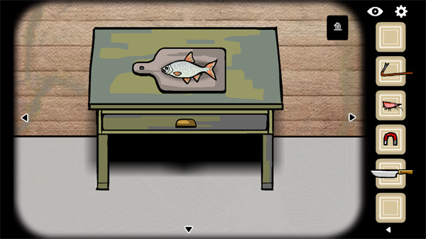 抓上来一只虾,取下后来到初始画面,把虾放在桌子的砧板上,用刀子把虾切开,得到钥匙后取回虾头。