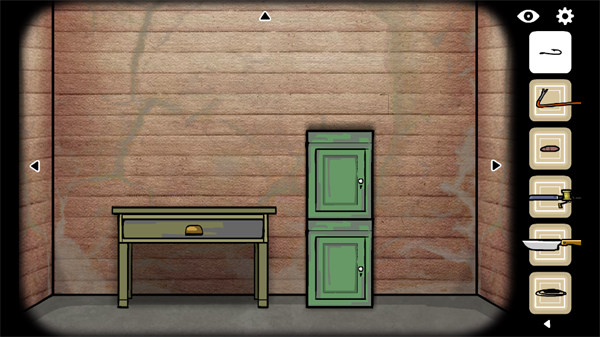 继续向右,打开下方的柜子,拾取柜子里的撬棍和柜子右边地板上的钩子。