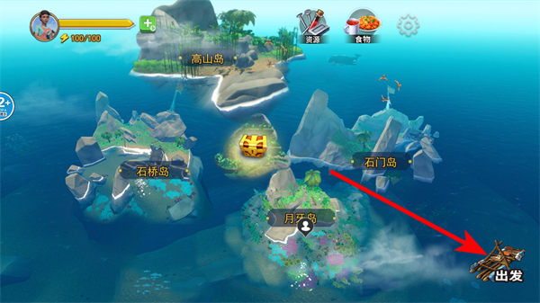 1、在游戏地图页面,点击右下角出发按钮,前往目标岛屿。
