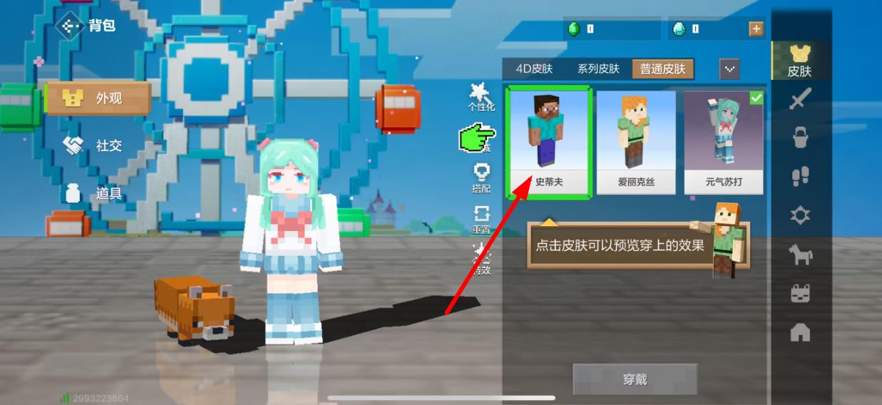 2、在外观界面右侧的皮肤分类中,选择4D皮肤,系列皮肤或普通皮肤等类别,点击想要更换的皮肤,预览穿上后的效果。