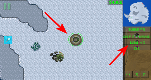 2、关注基地与右侧单位列表,优先选择基础础市民单位,市民是末世中发展的基础,为后续资源获取和建造奠定基础。