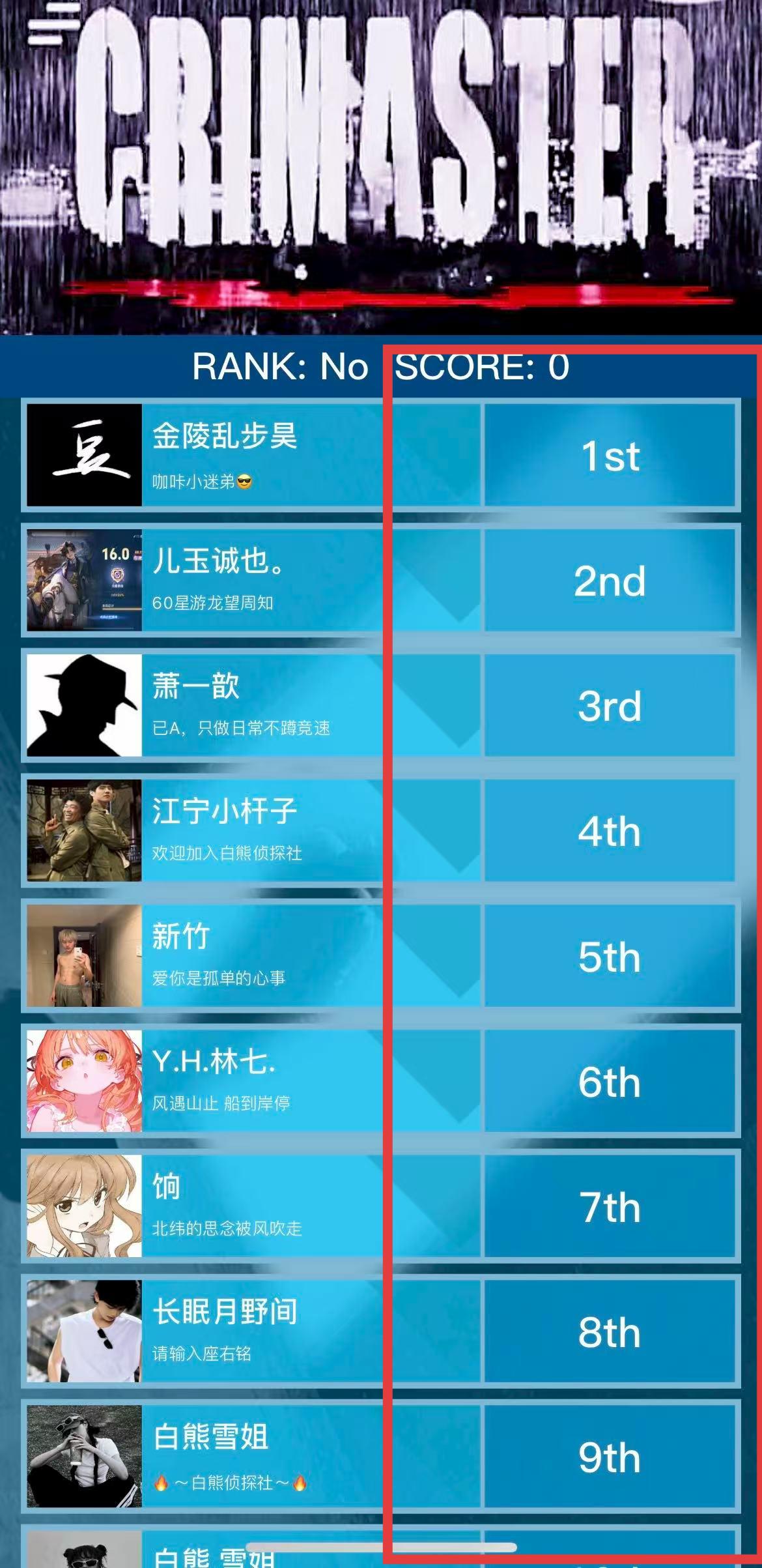 3、等待跳转完成之后,加载出的页面清晰明了地展示出排行榜,就可以查看玩家昵称以及对应排名次序。