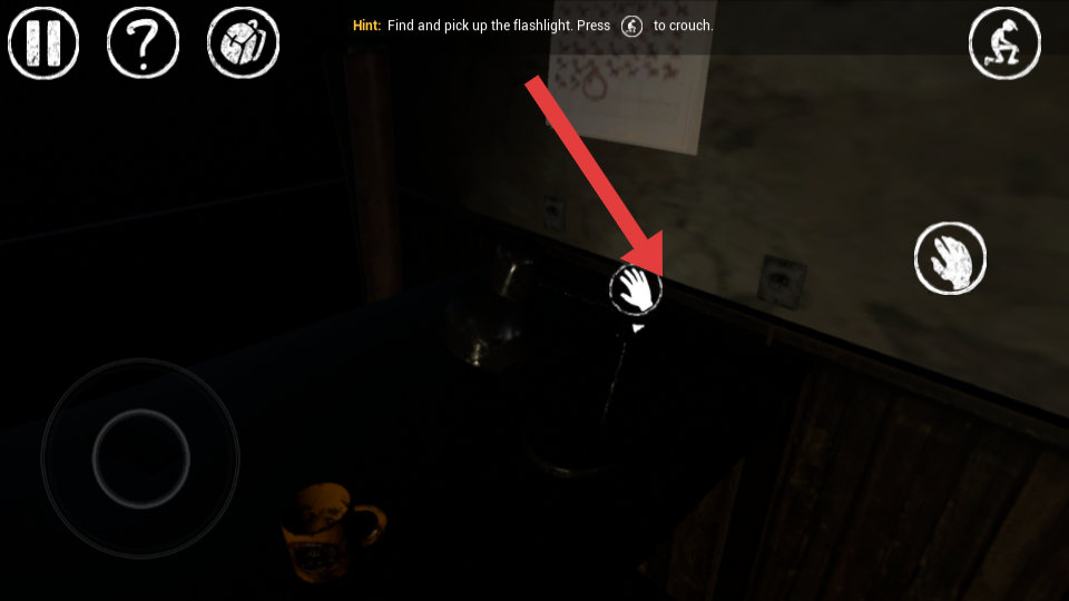 2、当看到箭头指向的交互按键手掌图标时,点击该按键,可与周围物品进行互动,尝试获取道具或触发线索。