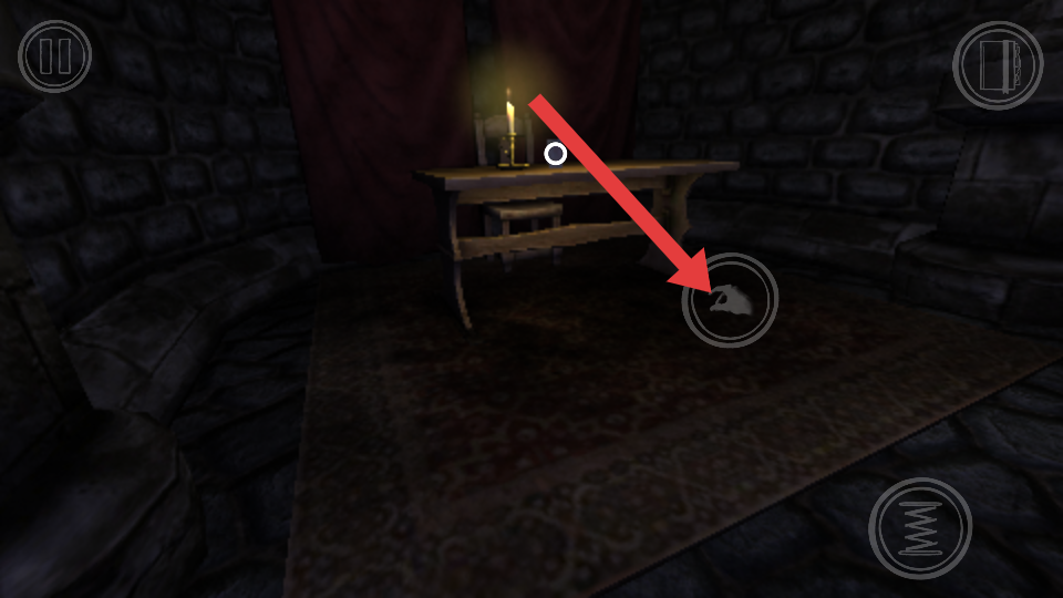 2、靠近室内的桌子等物品时,点击箭头指向的交互按键,可对桌上的蜡烛等物品进行互动,可能获取线索或道具。
